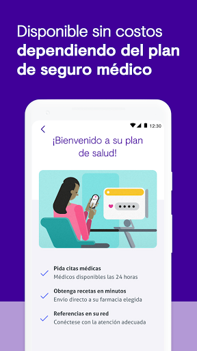 Profesional médico con disponibilidad 24/7 para cita videoconsulta. Reserva una cita para una consulta en video con un profesional médico certificado, disponible sin costo a través de planes de seguro médico seleccionados*.
