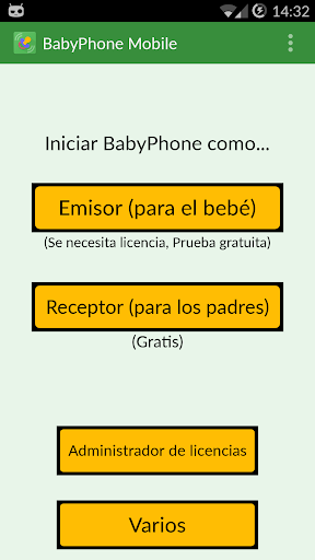 1.) Instala la app en el primer teléfono o tablet y después ábrela como emisor (dispositivo del bebé)