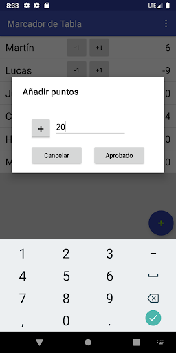- Haga clic en los puntos de un jugador para sumar o restar varios puntos a la vez