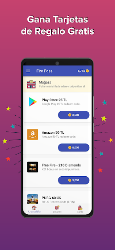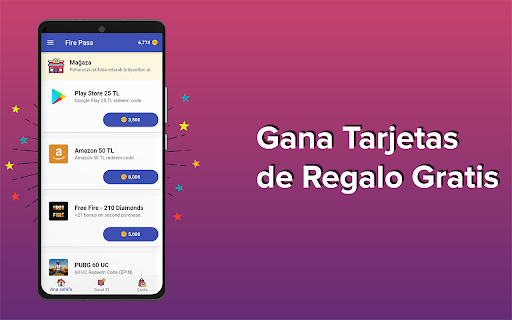 Gana oro simplemente completando misiones sencillas, rellenando cuestionarios o jugando. Luego, llévate un diamante, un elit pass o una de las muchas otras tarjetas de regalo de la tienda en la aplicación con el oro que consigas.