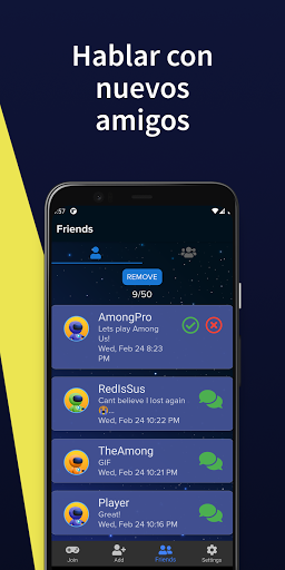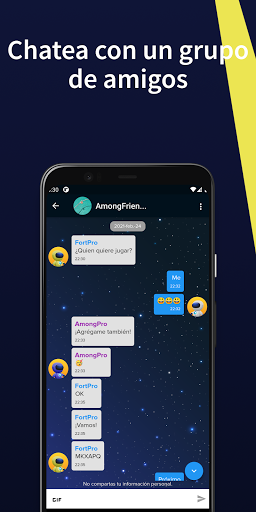 Puedes chatear con amigos de Among Us o Roblox, mantente en contacto con ellos o haz nuevos amigos dentro de nuestra app.