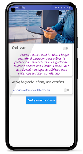 >> Caso de uso para la alarma del cargador: cuando se encuentre en un lugar público, por ejemplo, un aeropuerto, puede activar esa función y enchufar su teléfono para que no se cargue, cuando alguien lo desconecte, se le notificará con un sonido de alarma fuerte e imparable.
