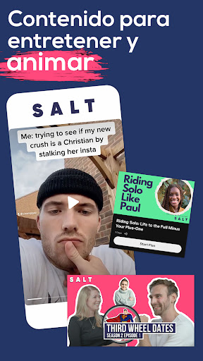SALT es la galardonada aplicación de citas cristianas, presentada por GQ, Vogue, BBC y otros medios globales. SALT está hecha para cristianos por cristianos. Únete hoy a 10,000 cristianos solteros. Puedes unirte, conocer, emparejar y enviar mensajes a cristianos solteros sin cargo, o elegir suscribirte para funciones adicionales.