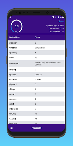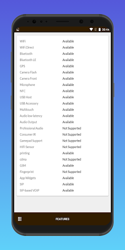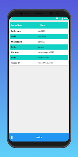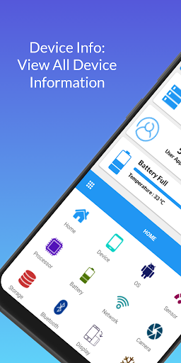 Información del dispositivo: Información del dispositivo Ver Todo es un simple y poderosa aplicación para Android que le da la información completa acerca de su dispositivo móvil con interfaces de usuario avanzadas. Información del dispositivo incluye información sobre la CPU, la memoria RAM, sistema operativo, sensores, almacenamiento, batería, SIM, Bluetooth, Red, instalado aplicaciones, aplicaciones de sistema, Display, cámara, térmica, etc.