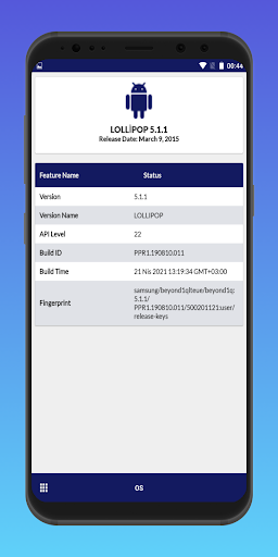 del Sistema operativo (OS) Info: Versión, Verson Nombre, API Nivel de construcción de identidad, el tiempo de construcción, huellas dactilares, etc.