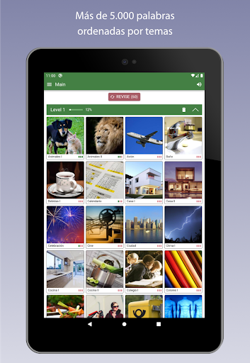 - Más de 5.000 palabras clasificadas por niveles y temas.