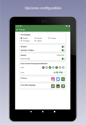 - Uso sin conexión a Internet: Sólo necesitarás conexión la primera vez que uses la aplicación, para descargarte las palabras, y luego podrás trabajar OFFLINE siempre que quieras.