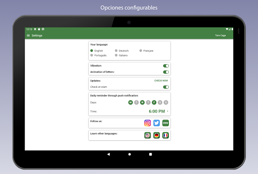 - Avances en la nube: Los avances se guardarán en nuestro servidor cuando tengas conexión a Internet y así se sincronizarán entre todos tus dispositivos (móviles, tabletas, ...). Nunca perderás tus avances, aunque reinstales la aplicación.