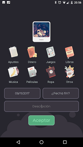 Con That’s mine! siempre sabrás a quién le has dejado tus cosas. Anota todo lo que prestas en distintas categorías como videojuegos, libros, películas, discos, ropa, dinero, apuntes… así sabrás a quién pedirlas cuando las quieras recuperar.
