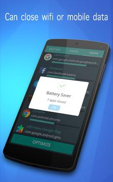 Battery Saver has many ways to save battery life intelligently. What’s more,Battery Plus can close wifi or mobile data when screen off which help you extend battery life.