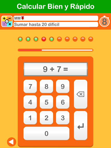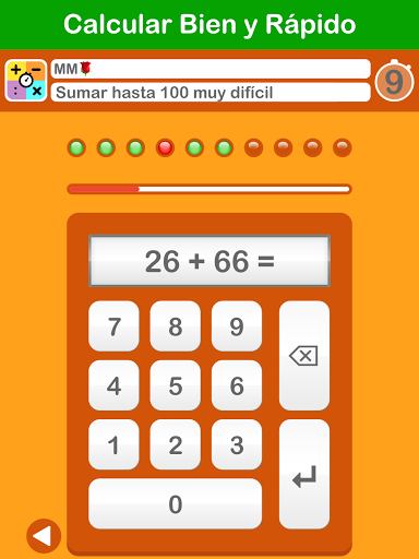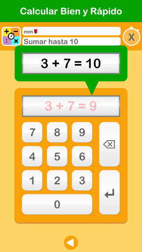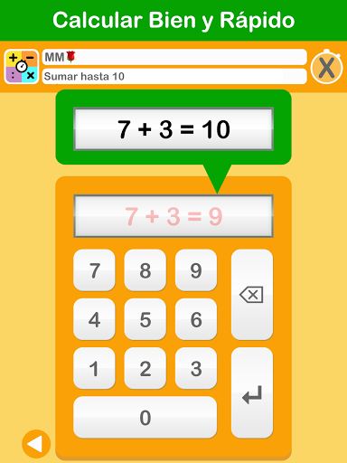 Practique sumas primero sin tiempo. En el modo de práctica (X), la respuesta correcta aparece después de una respuesta incorrecta. Las sumas incorrectas siempre se repiten. Solo cuando esto vaya bien comenzarás a entrenar a gran velocidad. ¡Así que primero BIEN y luego RÁPIDO!