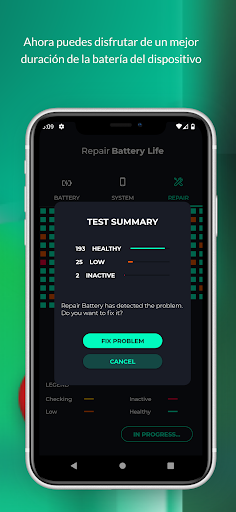Repair Battery Life is an app focused on improving the quality and duration of the battery by doing a deep scan of the system to detect and correct errors in battery performance.