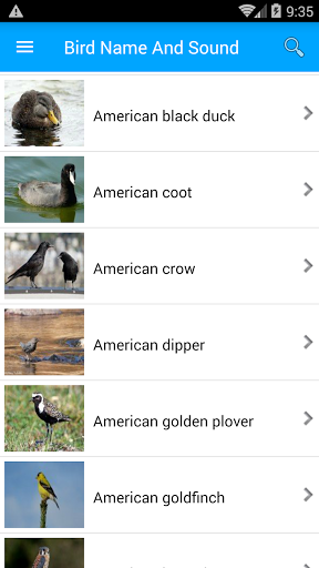 Bird Name And Sound is contains many of birds names,pictures and sound