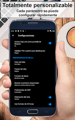 • Mostrar un reloj digital extra grande en la pantalla de bloqueo.
