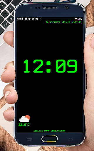 Gran reloj digital para la pantalla de bloqueo, ¡el más grande que existe! Reproduce la pantalla clásica de un reloj digital. El diseño es personalizable. Funciona con todas las pantallas, incluidas los tablets.