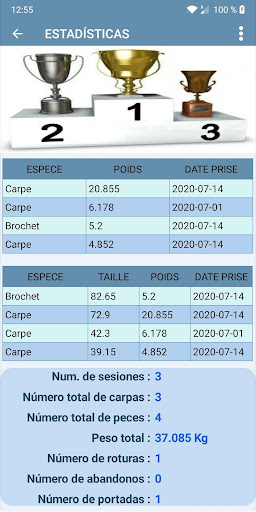 Carnet De Pêche genera estadísticas completas que le permiten organizarse mejor de una sesión a otra.