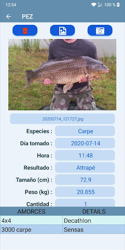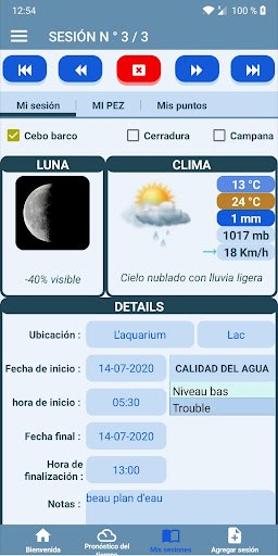Gracias a Carnet De Pêche, registra todas sus sesiones de pesca que enriquece con información detallada como el tamaño, el peso, el tipo de captura capturada.