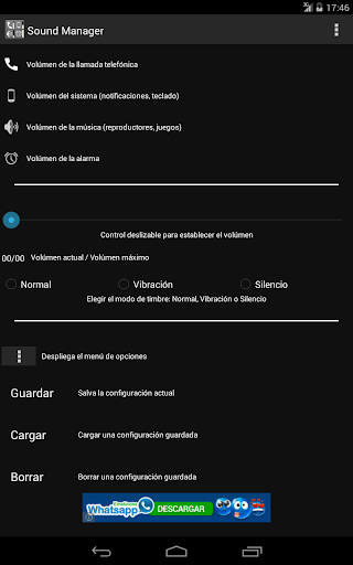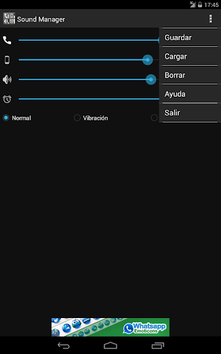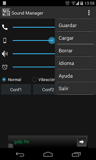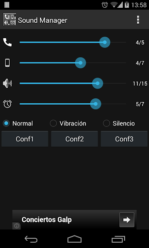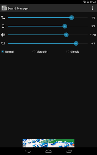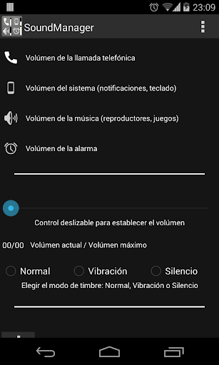 Sound Manager permite configurar el volumen de los diferentes tipos de sonido existentes en el dispositivo: llamadas telefónicas, sonidos del sistema como las notificaciones o el teclado, los reproductores de música o la música de los juegos y las alarmas.
