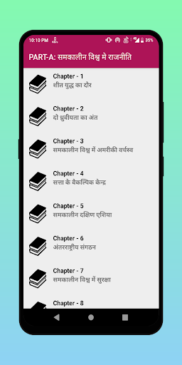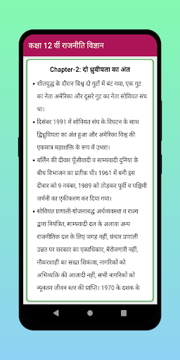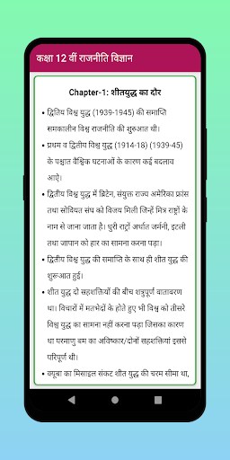 This app helps students. This app provides notes of NCERT Political Science Class 12 Notes in Hindi Medium. Ba (Bachelor of Arts) Notes and Books for free in Hindi.