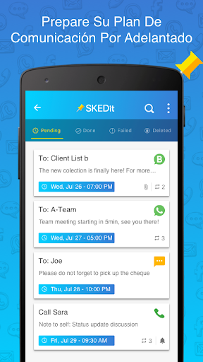 SKEDit te ayuda a organizarte permitiendo programar tus necesidades de comunicación de mañana, hoy. Esta aplicación popular de planeamiento actúa como tu asistente virtual personal, manejando sin esfuerzo todas tus comunicaciones.