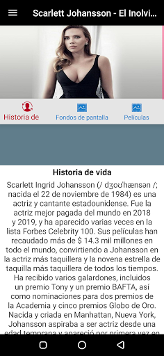 Toda la historia de vida y películas del famoso actor que conocemos como Black Widow. Fondos de pantalla del artista de películas Scarlett Johansson y más en una sola aplicación
