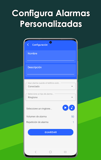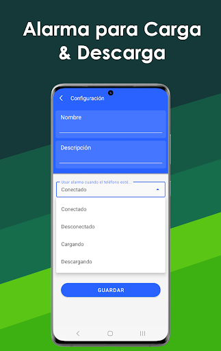 Esta alarma se puede configurar cuando el teléfono está enchufado, desenchufado, cargándose o descargándose con un porcentaje específico