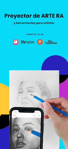 Esta aplicación superpone una imagen que desees dibujar sobre una hoja de papel real utilizando la cámara de tu dispositivo. Si miras a través de tu teléfono mientras está por encima de tu lienzo, crea una proyección virtual que puedes trazar. Esto te permite crear obras de arte de aspecto realista con proporciones perfectas, sombras y colores.