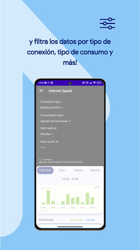 - Filtra por datos móviles, wifi, subida y/o descarga
