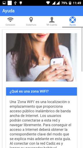 La red WiFi de Cádiz permitirá acceder a todos los servicios de una conexión a Internet, con la gran ventaja que no tienen que estar sujetos a un cable o a una corta conexión ADSL, y desde cualquier lugar público, siempre que se encuentre dentro de la zona de cobertura. Consulta la cobertura en la App o en nuestro sitio web.