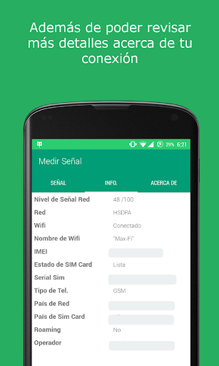 Con esta aplicación podrás medir de una manera fácil e intuitiva la potencia de la señal GSM o Wi-Fi de tu Celular o Tablet.