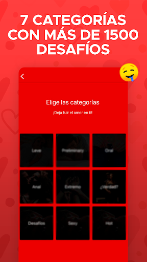 - ¡Verás las categorías, pudiendo seleccionar una o más y luego simplemente avanzar! Así tendrás varias sugerencias de nuevos retos eróticos cada semana con tu pareja.