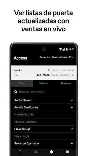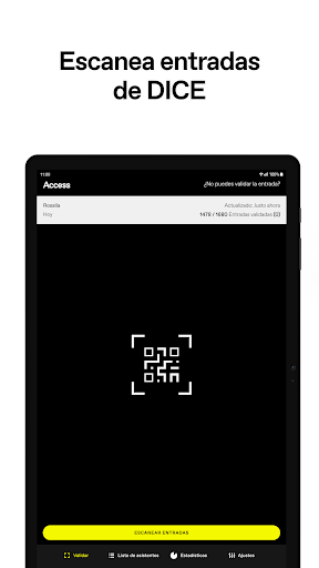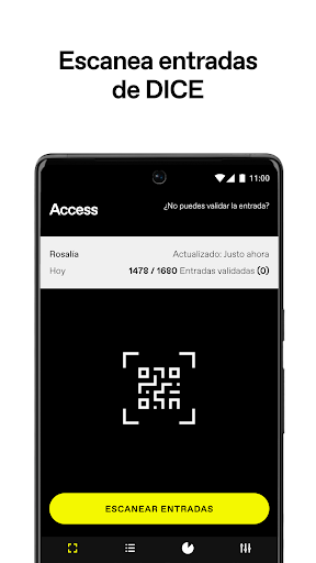 El acceso a DICE permite que los organizadores puedan gestionar facilmente sus eventos. Escanea las entradas y actualiza la lista de puerta en cuestión de segundos. Si no tienes acceso a internet puedes gestionarlo manualmente.