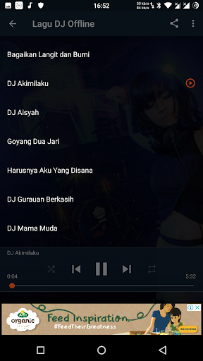 Dengarkan lagu viral DJ remix yang sedang sering diputar di segala tempat. Lagu bisa di putar secara offline dengan kulaitas suara yang benar-benar bagus apalagi jika menggunakan headset. Berisi berbagai macam musik misalnya dari DJ Akimilaku, DJ Nofin Asia dan masih banyak lagi yang bisa didengar bersama teman.