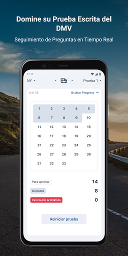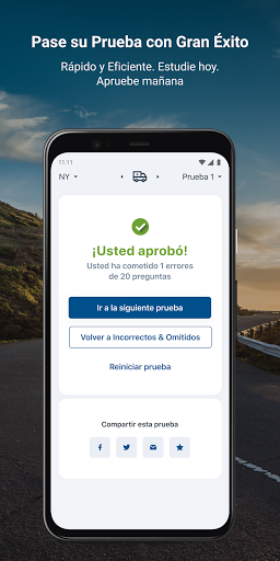 • Practique con Pruebas Integrales: Nuestras pruebas cubren todas las secciones del manual del conductor, por lo que no importa en qué estado se encuentre, usted estará bien preparado. Responda nuestras pruebas de práctica y cuando tome la prueba real, le parecerá fácil.