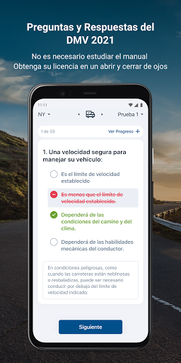 ¿Quiere tener un 99% de posibilidades de aprobar la prueba escrita del DMV? Con la PRUEBA DE PRÁCTICA DEL DMV, usted recibe pruebas de práctica del DMV gratis y específicas para el estado que son idénticas a la prueba real. Pase su prueba de permiso del 2021 por primera vez con las PRUEBAS DE PRÁCTICA DEL DMV. Pruebas de práctica gratis, como las reales - para los 50 estados: Licencias para vehículos, CDL y motocicletas.