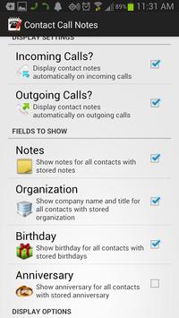 Contact Call Notes displays information stored in your phone's contacts on incoming and outgoing calls.
