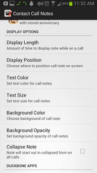 Customizing the look of call note and display duration are only in the paid version.