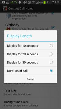 Call note duration can be adjusted from as little as 20 seconds, all the way up to displaying call note for duration of the call.