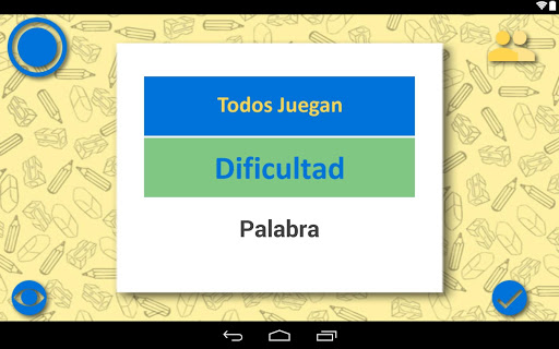 Todos Dibujando nos muestra el color del equipo que debe jugar, cuando se decide cuál de los integrantes del mismo va a dibujar se le pasa el móvil a esta persona el cual presiona el botón “Mostrar palabra” después de ver la palabra, toca sobre el botón Ocultar palabra, deja el celular en la mesa y comienza a dibujar