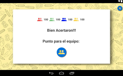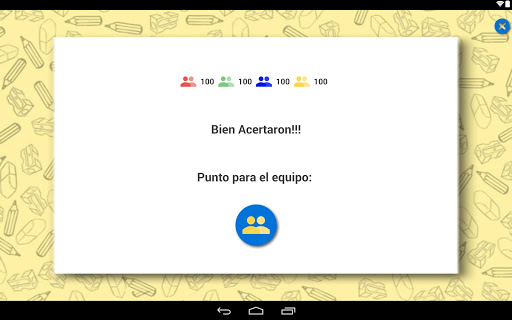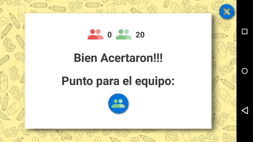 • El reloj comienza a contar, si el equipo acierta antes de que acabe el tiempo Presiona el Botón con la tilde obteniendo (10 punto) y vuelve a tener el derecho de juego hasta que no se cumple lo anterior en cuyo caso pasa el Móvil al equipo siguiente sugerido por el juego repitiendo todo desde el principio.
