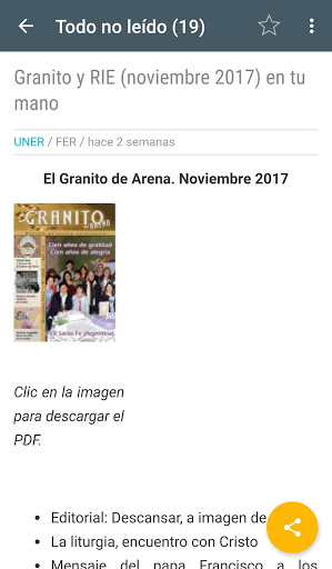 La revista El Granito de Arena se edita ininterrumpidamente desde noviembre de 1907. Actualmente, es posible suscribirse a la versión impresa y acceder a los artículos a través del Blog Eucarístico. También cuenta la app para Android desde donde visualizar en tiempo real las novedades de El Granito y el Blog Eucarístico.
