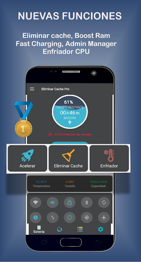 Eliminar cache y basura es el principal objetivo de esta aplicación en conjunto con otras funciones muy completas como ahorro de batería, acelerar ram, enfriamiento de batería y cpu.