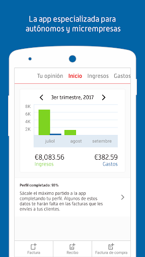Crea facturas sobre la marcha, desde tu teléfono móvil. Rápida y fácilmente.