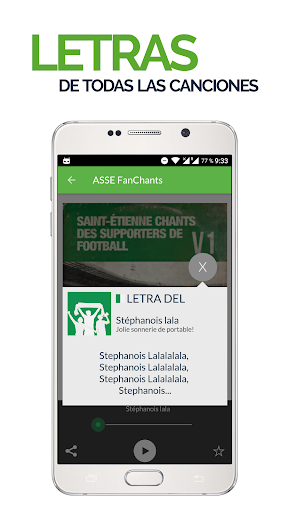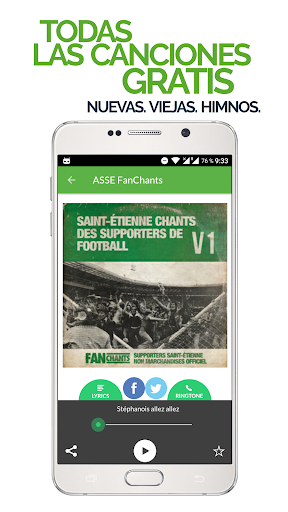 para escuchar en tus parlantes, enviar a amigos y usar como ringtones de fútbol. Reciba notificaciones para escuchar nuevos cánticos de fans de Saint-Etienne y use la opción de grabación para añadir nuevos