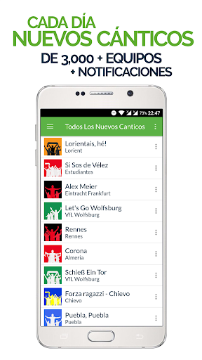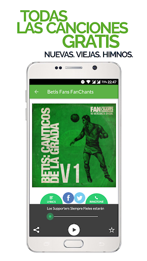 para escuchar en tus parlantes, enviar a amigos y usar como ringtones de fútbol. Reciba notificaciones para escuchar nuevos cánticos de fans de Betis y use la opción de grabación para añadir nuevos