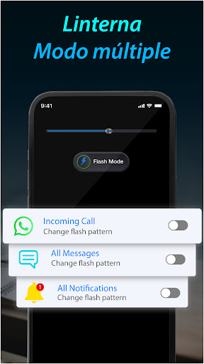 Flashlight: Flash & Flash Alert es una aplicación que proporciona flash en teléfonos Android cuando hay una llamada o mensaje entrante, notificación.