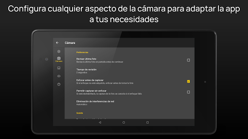 ** En Android 4.4 ó inferior, las exposiciones largas disminuyen el tamaño de la foto a 2 ó 1 MP, dependiendo de modelos.