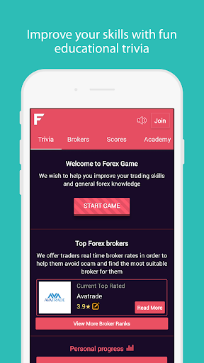 Forex Game enables you to learn all about trading in a fun and friendly way while playing cool trivia games with Zero risk and expend your knowledge as a financial market trader on real Forex, Stocks and Crypto markets.
