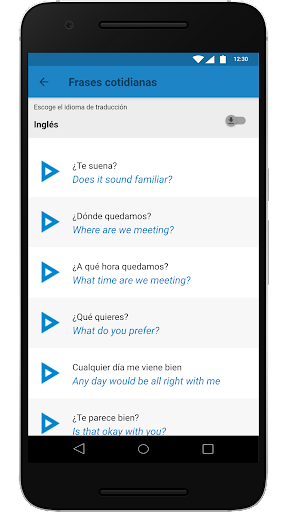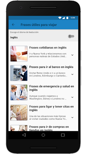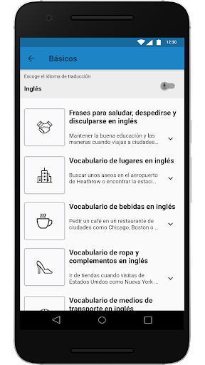 En “Básicos” se encuentra disponible vocabulario útil para el día a día, mientras que en “Frases útiles para viajar” se encuentran ciertas frases hechas de ayuda para situaciones concretas.