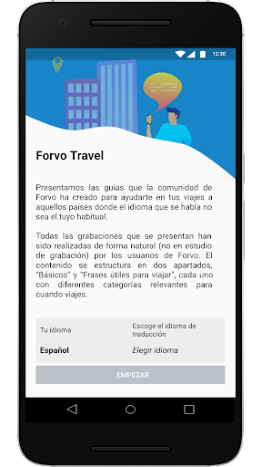Todas las grabaciones que se presentan han sido realizadas de forma natural (no en estudio de grabación) por los usuarios de Forvo. El contenido se estructura en dos apartados, “Básicos” y “Frases útiles para viajar”, cada uno con diferentes categorías relevantes para cuando viajes.